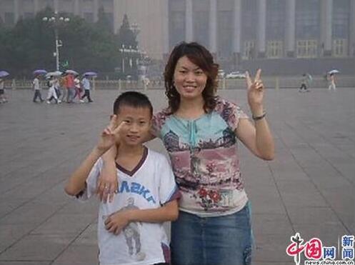 2007年,11歲的李嘉浩和媽媽去北京旅游,在天安門廣場(chǎng)上合影,那是他第一次跟媽媽出遠(yuǎn)門。(受訪者供圖)